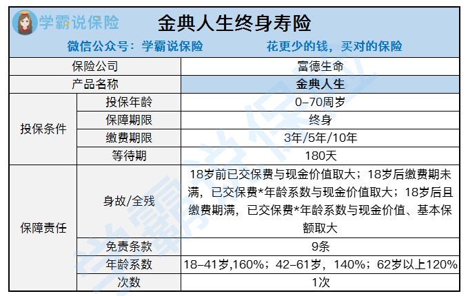 根据产品条款,我们来对富德生命金典人生终身寿险进行一波深度测评。