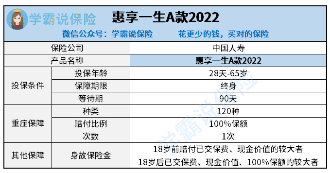 但是近日还是有一些保险公司推选出新品,例如中国人寿就上架了惠享一生A款2022重疾险~