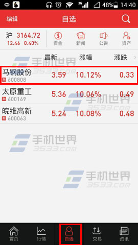 1)首先打开同花顺,进去后点击【自选】,再点击要删除的自选股。(如下图)
