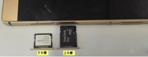 2、上卡槽既支持标准Nano SIM卡,也支持Micro SD卡,但同时只能装入其中一张卡,不支持两张卡同时装入,否则会造成手机损坏。