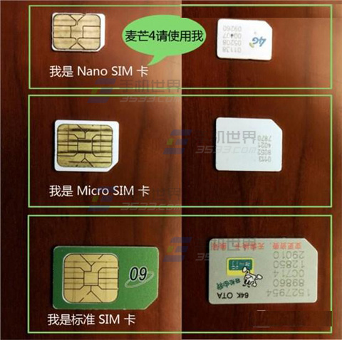 1、麦芒4支持Nano SIM卡,其他卡型非诚勿扰。有同学就要问了标准SIM卡、Micro SIM卡还有Nano SIM卡怎么区分呢?话不多说,直接上图。