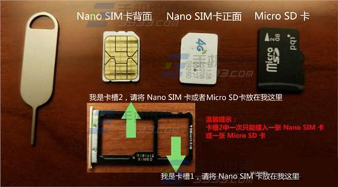 3、麦芒4的卡槽为双卡槽合一,可以同时插入两张Nano SIM卡,或1张Nano SIM卡和1张Micro SD卡。卡槽2中可插入一张Nano SIM卡或一张Micro SD卡,记住,真的真的真的(重要的事情说3遍)一次只能插一张卡哟。