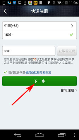 3)输入手机号,再输入手机验证码,点击【下一步】;(如下图)