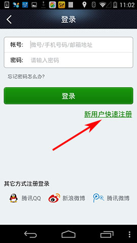 2)点击【新用户快速注册】;(如下图)
