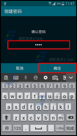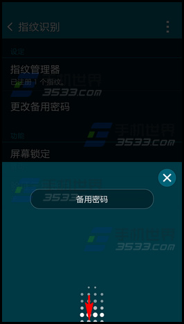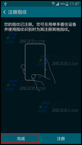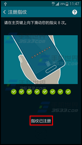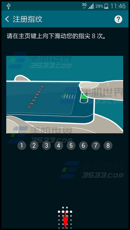 10)将您手指整个指腹,从屏幕中心位置向下滑动至【Home】键,输入您注册的指纹。