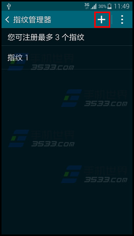 11)点击【+】图标可注册新的指纹(最多注册3个指纹)。(注册指纹请参考步骤5之后操作)