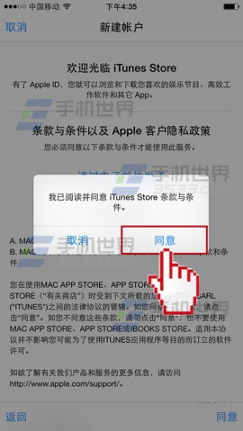 6.根据提示,选择”同意“iTunes Store的条款与条件