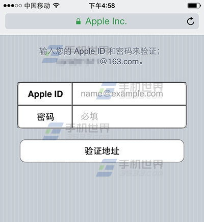 12.输入注册的Apple ID和密码,点击验证地址,完成激活操作。