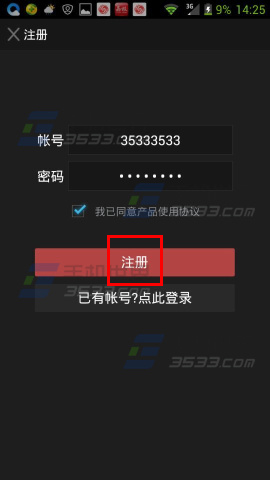 2)输入账号密码,然后点击【注册】;