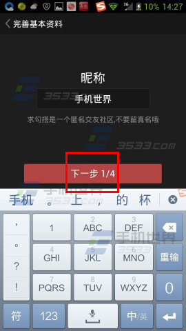 3)输入昵称,点击【下一步】;