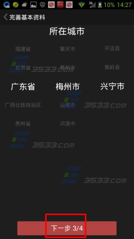 5)选择所在城市,点击【下一步】;