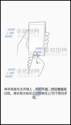 5)将手指放在主页键上,抬起手指,然后重复此过程,直到完成指纹注册。(请在每次尝试之间稍微向上/向下移动手指。)(如下图)