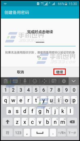 6)输入备用密码,然后点击【继续】。(提示:备用密码要求至少6个字符,其中包括至少1个字母和1个数字。)(如下图)