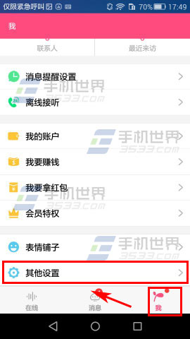 1)打开蜜桃语音,进去后点击【我】,再点击【其他设置】。(如下图)