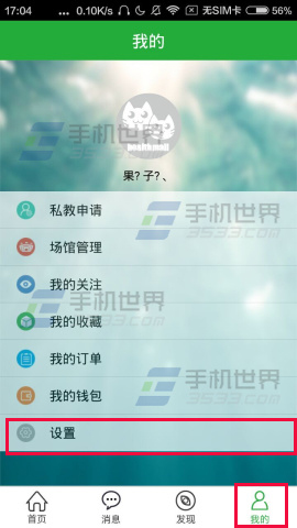 1)打开【健康猫】,点击右下角【我的】,之后点击【设置】;