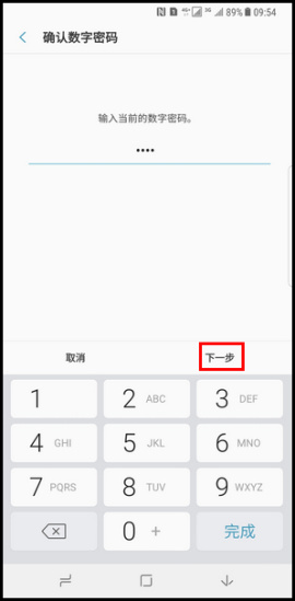 4、使用预设的屏幕解锁方式解锁屏幕,这里以输入数字密码为例,然后点击【下一步】。