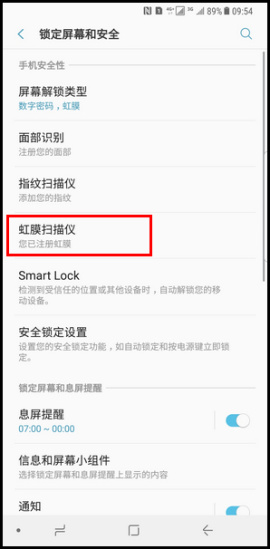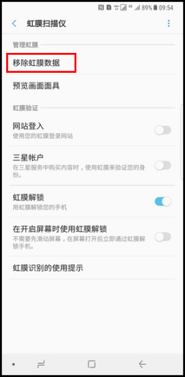 注:一旦删除了注册的虹膜,所有相关功能也会被停用。